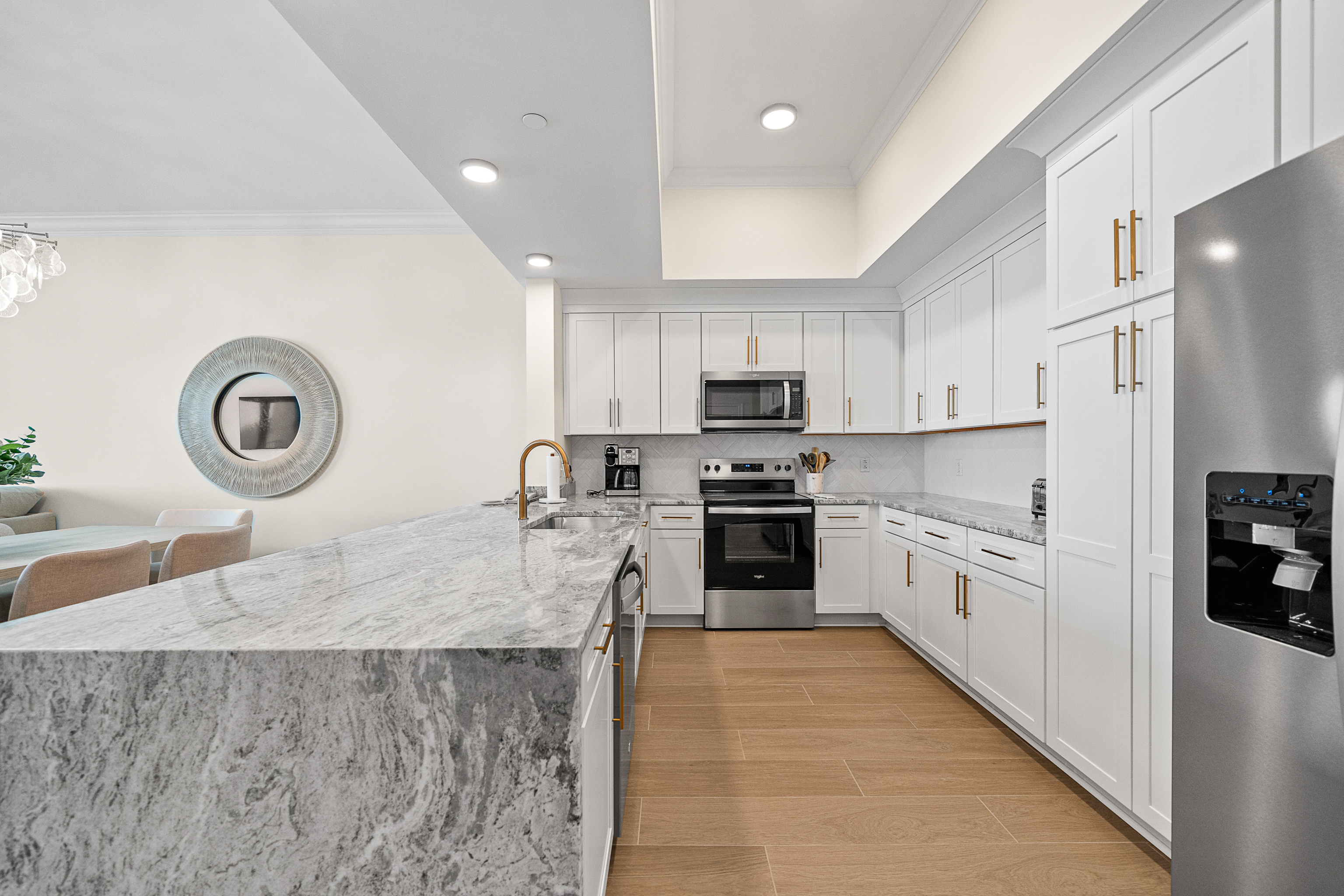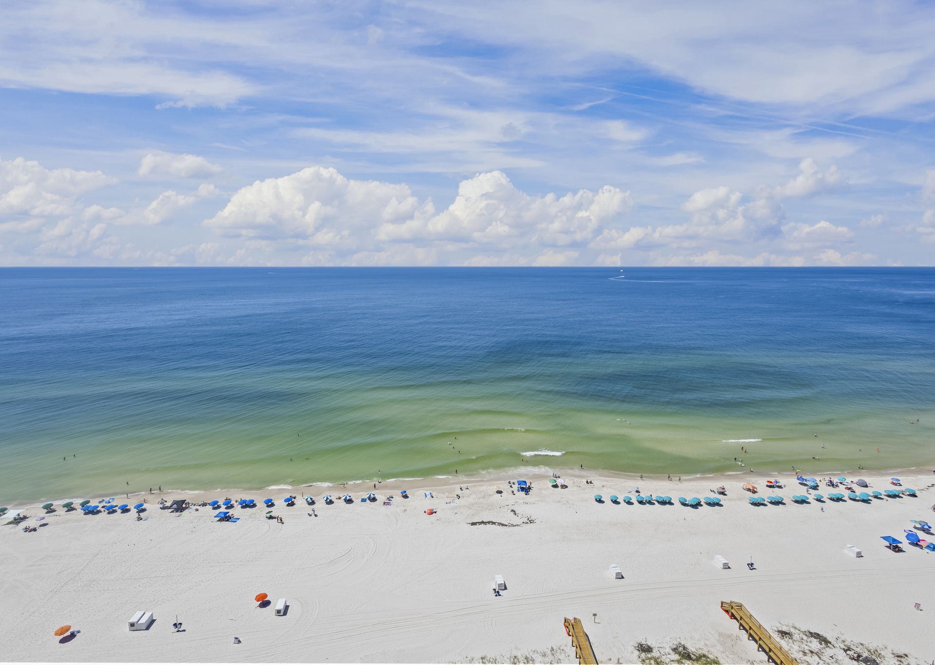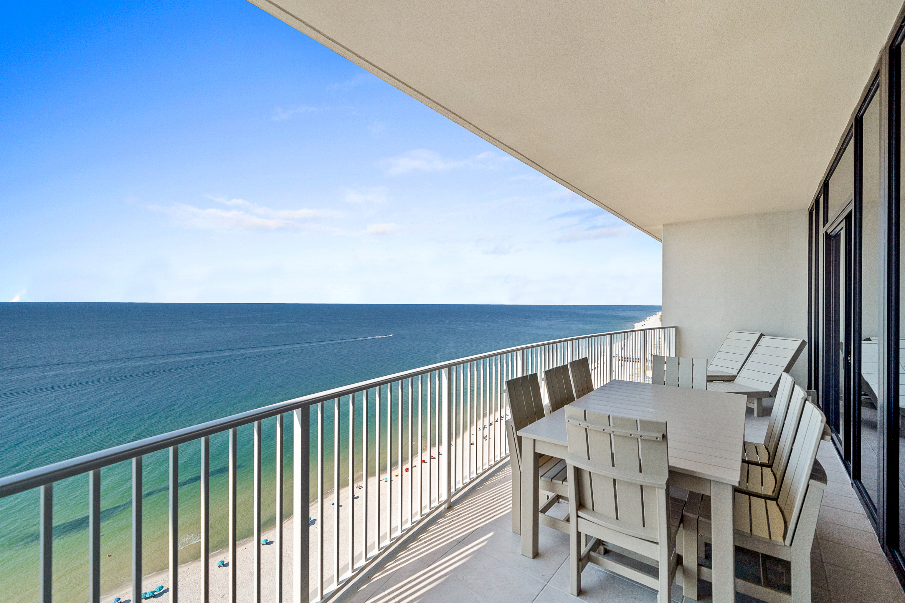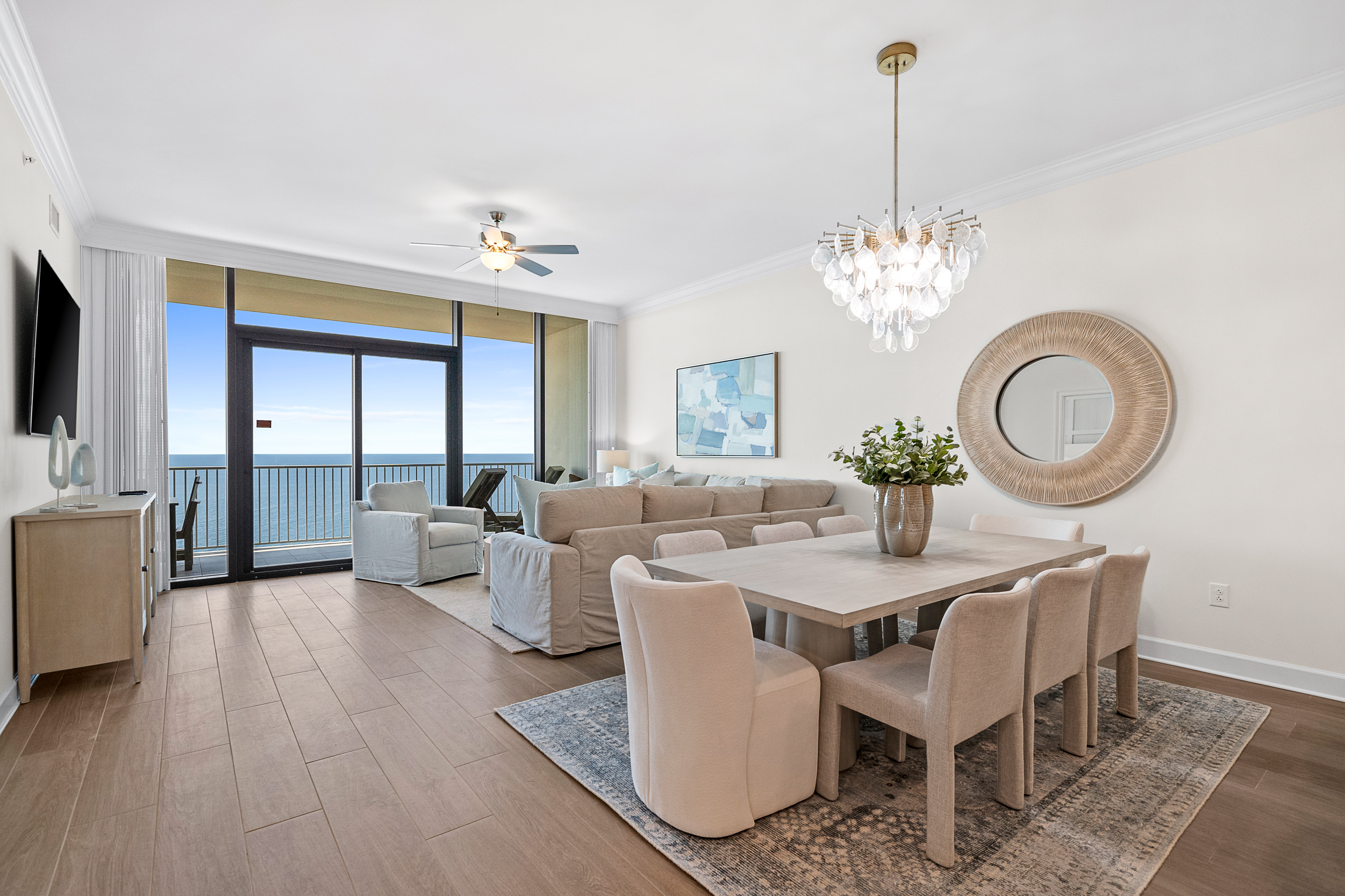 Featuring a stunning waterfall countertop island, open-concept living with floor-to-ceiling glass, and three spacious bedrooms including a custom bunk room. This penthouse blends comfort and design like no other. Step onto the private 25th-floor balcony to take in breathtaking sunsets over the endless Gulf horizon.